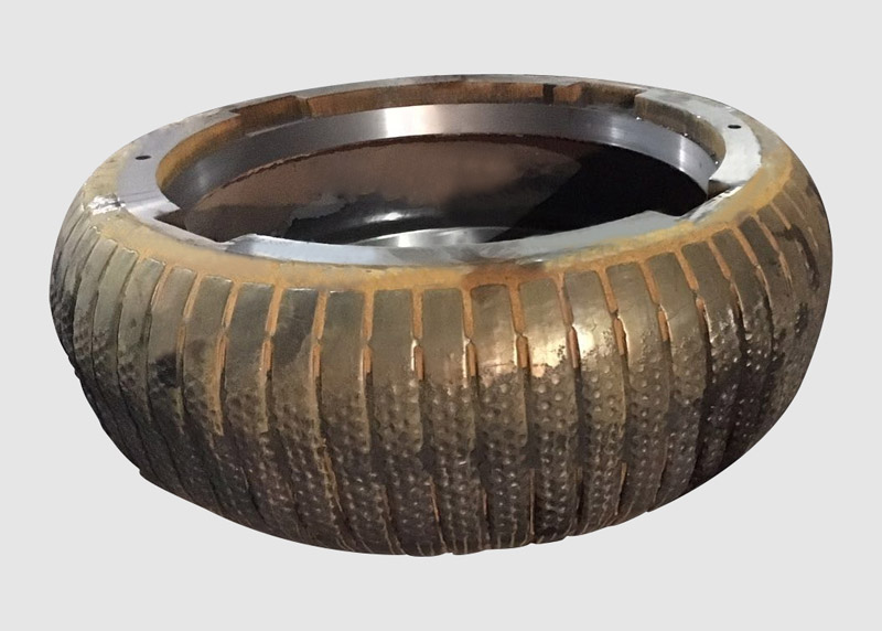 陶瓷金屬復(fù)合輥套由陶瓷和高鉻合金復(fù)合成,此耐磨件擁有獨(dú)特的陶瓷金屬蜂窩結(jié)構(gòu),能夠增加表面與物料研磨面積及咬合力,提高研磨效率。相較于普通高鉻輥套,陶瓷金屬復(fù)合輥套的耐磨性能夠提升2-3倍,且磨損均勻,運(yùn)行穩(wěn)定性更高。使用壽命長,穩(wěn)定性高,減少停機(jī)更換或修復(fù)帶來的產(chǎn)量損失,降低維修成本,使檢修計(jì)劃性更強(qiáng)。